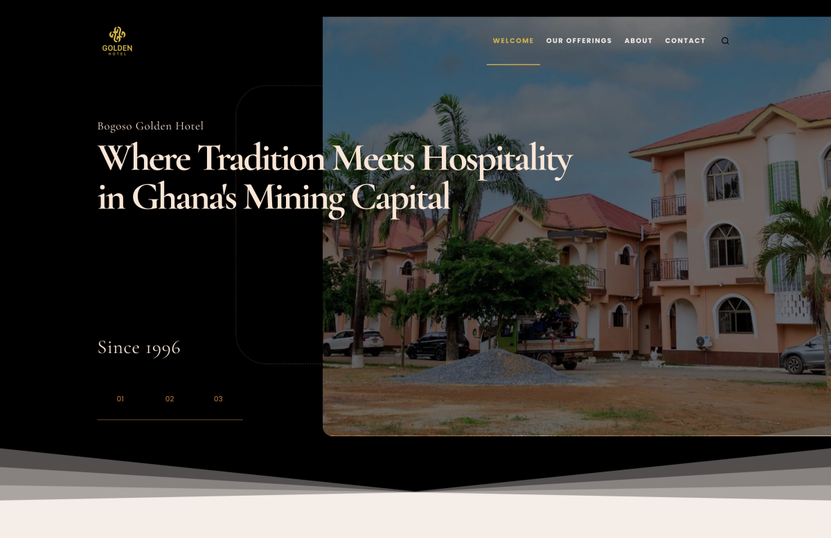 Bogoso Golden Hotel is a trusted hospitality destination in Bogoso, Ghana, offering over 30 years of accommodation excellence. Built by visionary leader Osagyefo Amanfo Edu VI, Bogosocater to business travelers, mining professionals, and local guests alike. Our facilities include a 300-guest conference center, versatile event spaces, and beautifully manicured outdoor grounds for weddings and corporate events. Guests can enjoy authentic Ghanaian and continental cuisine at our restaurant and bar, or unwind in our garden bar with refreshing drinks. Built by visionary leader Osagyefo Amanfo Edu VI, Bogoso Golden Hotel is dedicated to combining community values with high‑quality comfort and service.